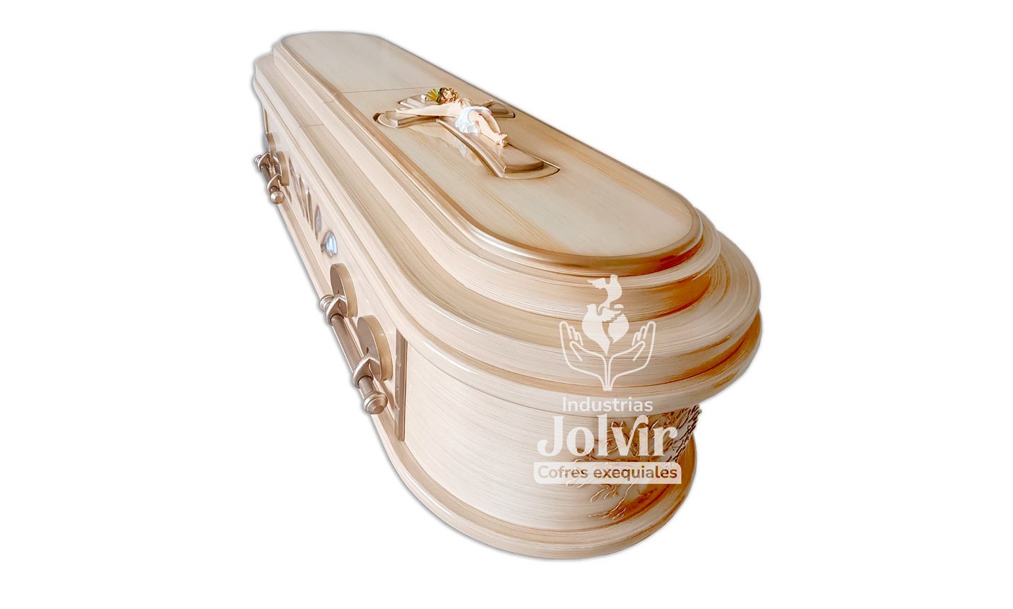 La línea Celestial representa serenidad, espiritualidad y un homenaje lleno de luz. Inspirada en conceptos de descanso eterno y armonía, esta colección combina materiales delicados con acabados suaves, ideales para despedidas llenas de significado.